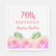 Rosa Rosa Rosa Rosa Floral 70 Surpresa Festa de aniversário Napkins. Aniversário guardanapos florais com lindas rosas rosa e folhas tropicais. Perfeito para uma mulher que comemora seu setuagésimo aniversário. Adicione seu nome e sua idade.
