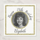 This design features a printed pattern in white and gold, a custom photo template, and is a nice choice for a special event to celebrate a milestone birthday.