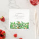Mesa perfeita para uma festa de aniversário de dezembro. Holly é a flor de nascimento daquele mês. Ele forma uma bonito borda de aquarela neste guardanapo festivo personalizado. O nome, a idade e a data de nascimento do celebrante de aniversário são colocados por cima dele usando caligrafia e tipografia elegantes. Todo texto é editável.
