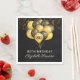 Balões negros e dourados e guardanapos de festa de aniversário de confete. Design de preto e ouro negros e em forma de ouro, com uma letra moderna de escrita. Personalizar para qualquer idade. 40, 50, 60, 70, 80, 90 e mais.
