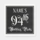 Este design de guardanapo de papel com tema de aniversário elaborado e rico apresenta um nome editável e a mensagem "94ª Festa de aniversário". O grande número "94º" e as palavras "Festa de aniversário" estão em texto de estilo de script luxuoso, e o plano de fundo é preto por padrão (embora possa ser personalizado). Guardanapos de papel evoluídos como este podem ser úteis para uma festa/celebração de aniversário para homenagear o 94º aniversário de alguém. [~Z0000563]