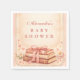 This charming baby shower design features a soft vintage book theme with stacked storybooks tied with delicate bows, warm neutral tones, and subtle heart accents for a cozy, storybook-inspired look. The gentle palette and refined details create a sweet yet elegant aesthetic that feels timeless and meaningful—perfect for celebrating a beautiful new chapter with an intimate, thoughtfully styled gathering.