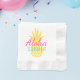 Os guardanapos do coquetel Aloha Summer apresentam texto cor-de-rosa na moda e turquesa e um abacaxi tropical amarelo