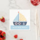 Fornecimentos modernos, elegantes e modernos para aquele chá de fraldas náutico. Design apresenta um veleiro com bolinhas e listras velejando com boias laranja, vermelhas e brancas e âncora no lado. Personalize facilmente com texto dentro do espaço disponível.