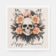 Decore uma mesa impressionante para o Halloween com esses guardanapos inspirados no vintage, apresentando um crânio detalhado emoldurado por rosas cor de pêssego, flores suaves e folhagens escuras. Os tons de outono discretos criam um visual sofisticado e ligeiramente assustador — perfeito para festas elegantes de Halloween ou encontros de outono. Uma escolha elegante para anfitriões que amam misturar o charme da estação com o design floral atemporal.