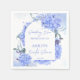 Hortênsias Something Blue elegante arco floral chá de noiva guardanapos personalizados, flores aquarela botânica, fundo azul claro aquarela, escrita moderna casual.