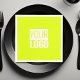 Abrigos de papel com fundo amarelo néon sólido e logotipo de cobrir. Personalize agora mesmo. A design de Alma Wad é moderna e moderna. Ideal para um restaurante ou café / qualquer outro evento corporativo.