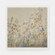 This napkin features an ethereal, meadow-inspired landscape rendered in a delicate watercolor style. Stems of wildflowers and clover-like foliage stretch upward against a warm linen-textured background, creating a tactile, fabric-like appearance.