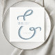 Simples, mínimo, único guardanapo de casamentos azuis empoeirado, personalizado, com caligrafia moderna, monograma e elegante e moderno.