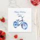 Bicicleta aquarela, cor de fundo personalizada e nome, guardanapos de aniversário.