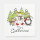 Um bonitinho, colorido guardanapo de design de Natal com um urso polar, pinguim e rato, todos com lenços e skates de gelo com árvores cobertas de neve e texto que diz É Natal!