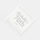 Branco elegante e moderno com guardanapos de festa de aniversário de papel 70 da mulher reluzente de prata personalizados com nome e idade. Todo texto é personalizável.