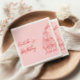 Como podem ver, este guardanapo de aniversário único e elegante tem um modelo bem projetado. Com uma torre de champanhe desenhada com a mão vermelha e um nome escrito com a mão branca. Tudo em fundo cor-de-rosa. O que você pode personalizar facilmente ao clicar no botão personalizar.