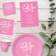 Um simples guardanapo moderno com elegante tipografia de escrita de caligrafia e design minimalista de cor rosa e branca.