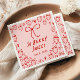 Esta design moderna e moderna apresenta risos ousados e vermelhos, morangos e corações desenhados à mão branca e adoráveis tipografia correspondente.