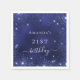 Um guardanapo para uma festa de aniversário feminina e glamourosa de 21 (ou qualquer idade). Um fundo azul marinho com poeira brilhante elegante. A cor azul é irregular. Personalize e adicione um nome e idade 21. Cartas brancas.