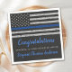 Parabéns! DESIGN da bandeira americana em cores da Polícia, vintage angustiada design em couro preto. Esta feliz coleção de aposentadoria do policial será um favorito. Personalize com o nome dos oficiais, e parabéns podem ser mudados para uma feliz aposentadoria. Perfeito para a festa de aposentadoria da polícia ou para a festa de formatura da academia de polícia. Veja nossa fina coleção de linhas azuis para fazer correspondência com convites de aposentadoria da polícia, presentes da polícia, favoritos para festas e suprimentos. COPYRIGHT © 2020 Judy Burrows, Black Dog Art - Todos Os Direitos Reservados. Agente Policial de Sinalizador de Linha Azul Fino - Aposentadoria Napkins