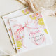 Celebre a alegre chegada de uma garotinha com nosso guardanapo chá de fraldas "Ciao Bambina". Este charmoso design apresenta flores aquáticas, suaves, cor-de-rosa, cor-de-rosa e delicadas, e fatias de limão, e um arco lindamente ilustrado.