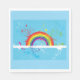 Um arco-íris de estilo artístico, bonito e colorido num fundo azul. Esta design parece realmente eficaz nestes Napkins de Papel