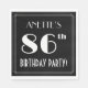 Este na moda e os anos vindouros inspiraram oitenta e seis aniversários no papel napkin design de um nome personalizado, um rico de arte parece inspirado no número "86º", a mensagem "FESTA DE ANIVERSÁRIO!" e uma fronteira multilinha. O plano de fundo é preto por padrão, mas pode ser personalizado para uma cor diferente, se desejar. Os guardanapos de papel luxuosos como estes podem ser usados ao hospedar uma festa de aniversário para alguém em comemoração de seus oitenta e seis anos de aniversário. [~Z0000612]