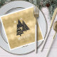 Este guardanapo de papel apresenta uma bela disposição de árvores de Natal estilizadas e flocos de neve em preto e branco sobre um fundo texturizado em tons de ouro. Foi fornecido um texto "Feriados Felizes" opcional e um modelo para adicionar seu nome e/ou outro texto. Procure ID861 a ID864 para ver opções de cores adicionais e outros produtos neste conjunto de design de Natal moderno.