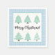 Este adorável guardanapo de Natal apresenta uma variedade de árvores de Natal brancas e pastéis em fundo de xadrez azul e diz "Feliz Natal" (ou personalizar para um nome ou outra frase).