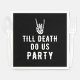 Até a morte, festejamos guardanapos em preto e branco com uma mão esquelética. decorações de mesa de festas falsas para um chá de panela, solteira, festa de casamento ou qualquer festa temática. Visite nossa coleção para ver mais itens coordenadores que correspondam a este design para seu evento especial.