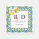 Azulejos azuis e amarelas mediterrânicos e ramificação de limão com flores guardanapo de papel de casamento. Este design de guardanapo de papel de casamento explode com charme mediterrânico, mostrando um padrão de azulejo azul e amarelo vibrante que evoca as costas ensolaradas da Itália. Os filhotes de galhos de limão florescentes, graciosamente colocados no canto superior esquerdo, adicionam um toque de elegância italiana clássica. A design é uma mistura deliciosa de sofisticação e brincadeira, ideal para uma celebração que abraça o calor e a beleza de um verão italiano. Todos os detalhes essenciais são apresentados claramente dentro de um quadro quadrado, garantindo a legibilidade e a apresentação do na moda.