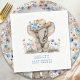 Bonitos guardanapos de chá de fraldas de vô personalizados com elefante bebê em um chapéu de vaqueiro e flores silvestres pastéis de terra. Os guardanapos estão escritos com o seu texto peronalizado, na tipografia do estilo ocidental e têm uma paleta de cor suave de azul e marrom. Por favor, navegue na minha coleção de Chás de fraldas Boho Elephant para coordenar papelaria, jogos, placas e decoração de chás.