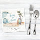 Os guardanapos de chá de fraldas, com o tema da surfe no verão, com uma cena de praia em aquarela com ondas quebrantes, palmeiras, pranchas arenosas e marrons, e o "Baby On Conselho" mostrado em um divertido roteiro azul. Personalize o nome e a data do chá de fraldas da mãe em simples letras.