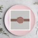 Design moderno e elegante apresenta uma banda mauve e um centro de "selo de cera" que podem ser personalizados com as iniciais de um casal em fundo de cinza leve
