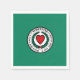 Guardanapo de papel com bandeira da cidade de Worcester, Massachusetts; bandeira verde com emblema branco com coração vermelho no centro