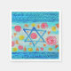 Decorre sua casa com a alegria judaica! Brilhe a sua casa com este adorável conjunto de guardanapos de papel, apresentando uma bandeira israelita branca e colorida com espirais, rosas e corações.
