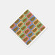 Guardanapos divertidos e coloridos em estilo pop art com um padrão de retângulos de diferentes cores, cada um com uma batata marrom feliz no meio.