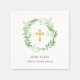 Esses elegantes guardanapos botânicos do batismo apresentam uma coroa verde de folhas cercando uma cruz de ouro falso, sobre um fundo branco limpo. Usamos arte de LABFcreations.