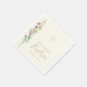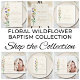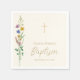Este guardanapo de papel para Batismo floral apresenta flores silvestres e uma cruz com tipografia dourada em um fundo suave creme.