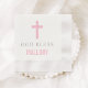 Simples e moderno guardanapo personalizado para celebração batismo em cor rosa e cinza para menina. Inclui "Deus abençoe" com o nome do bebê texto personalizado e uma cruz.