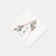 Um guardanapo de batismo feminino com lindos botânicos antigos sobre um triângulo estrutural de ouro rosa num fundo branco com monograma empilhado de criança e nome do evento.