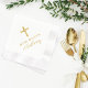 Este design de celebração religiosa do batismo guardanapo apresenta uma cruz com Deus abençoe que podem ser personalizados com o primeiro nome do bebê. Impresso em tinta digital dourada.