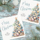 Celebrate the season with this festive and beachy party napkin, perfect for a Christmas Party. The design features a whimsical Christmas tree made of beach shells, starfish, and coral on the right side, adding a fun coastal touch to your table setup. The overall color palette includes shades of teal blue and tan, creating a relaxed, breezy vibe.