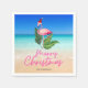 Flamingo na praia vestindo um chapéu de Papai Noel com néon cor-de-rosa "Feliz Natal", guardanapos de festas de Natal design. Personalizado com seus nomes. Divertido para quem gosta de um Natal quente na Flórida.
