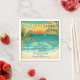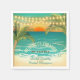 Palmeiras e luzes de cordas armam o pôr do sol do oceano e a costa arenosa neste adorável casamento de praia Paper Napkins. Personalize o texto moderno e na moda com suas informações de casamento.