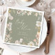 Adicione um toque de elegância floral à celebração do seu chá de fraldas! Nosso lindo guardanapo "Baby in Bloom" apresenta um lindo e macio fundo verde enquadrado por delicadas ilustrações de aquarelas de flores florescentes. Uma fonte de script graciosa faz deste guardanapo um perfeito e na moda detalhe para o seu evento especial. Personalize-o facilmente com o nome da futura mãe para criar um toque único e memorável para os seus convidados.
