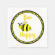 Bee Happy sorridente abelha amarela com listras pretas e asas flamejantes com texto escrito em amarelo ouro. Buzz é escrito em ambos os lados da borda circular amarela preta com bolinhas pretas. Fraldas de papel para as festas e festividades de primavera e verão. Arte original © TamiraZDesign.