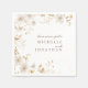 Os elegantes guardanapos de casamento brancos e bronzeados personalizados com a escritura inspiradora de citação retratam uma bela aquarela floral com um design mínimo que inclui simples flores brancas e folhas bronzeadas. Ele apresenta um estilo moderno com nomes de casais e Bíblia Cristã Verse 1 Corinthians 13:8, "O amor nunca falha."