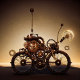 Mística e divertida bicicleta steampunk com engrenagens.