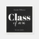 Celebrate a milestone moment with these elegant black and white graduation party napkins, fully personalized with the graduate’s name, class year, and a custom message. Perfect for high school or college graduation parties, these customizable napkins add a meaningful and polished touch to your table décor. The classic monochrome design pairs effortlessly with any school colors or party theme, making them a stylish and practical detail that honors your graduate in a truly personal way.