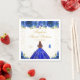 Este elegante e glamouroso e doce guardanapo apresenta uma bela princesa com cabelo vermelho castanho e pele clara em um vestido azul real de bola. O texto combina o script manuscrito e as fontes sans serif modernas para um aspecto elegante e sofisticado. Os arranjos florais, borboletas e confete de ouro criam a mistura perfeita de rústicos e quicos. Gráficos por www.etsy.com/uk/shop/SunflowerDayLove