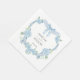 Blue Hydrangea Crest Watercolor Paper Wedding Napkins. Celebrate your special day with these beautiful blue hydrangea wedding napkins. Featuring a delicate watercolor wreath of soft blue hydrangeas and flowing ribbon, this design elegantly frames your names and wedding date. It's perfect for adding a touch of romantic, garden-inspired or French charm to your reception tables, cocktail hour, or any part of your wedding celebration. These napkins are sure to impress your guests and create a memorable experience.
