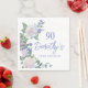 As rosas brancas e as flores azuis criam um belo e elegante arranjo floral. O nome da aniversariante está escrito em uma grande fonte azul de script. 90 Aniversário segue. Este guardanapo de aniversário é parte da coleção de Azul e Branco Azul de Aniversário 90. Contém muitos modelos DIY que permitem criar rapidamente convites e suprimentos de festas.